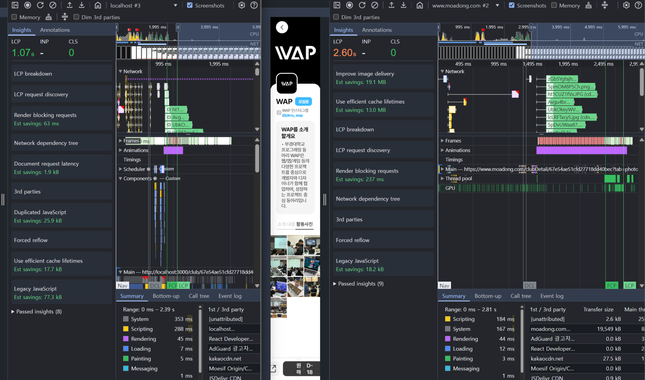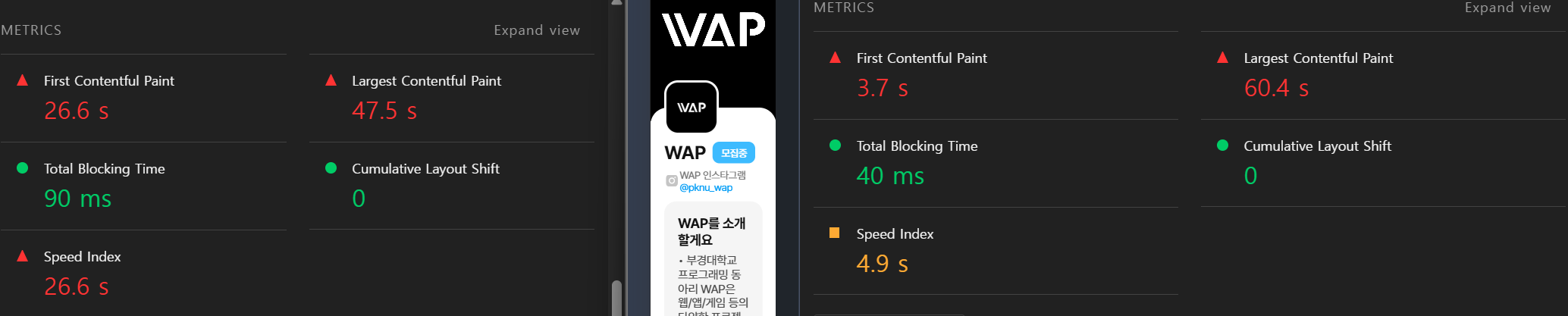 그리고 LCP에 원래는 활동사진이 포함된다고 생각했는데, 상세페이지의 동아리 대표 이미지가 LCP의 대상이었습니다.